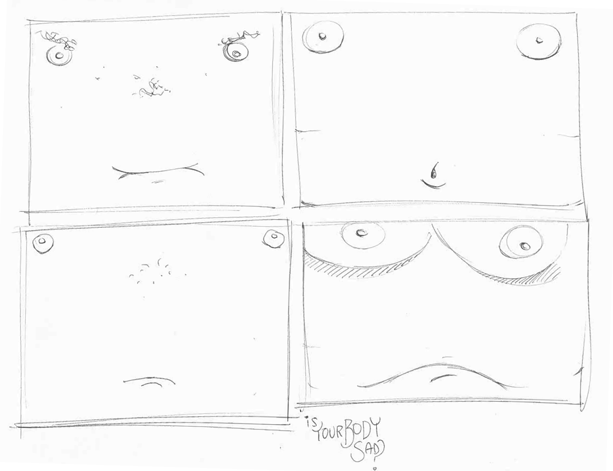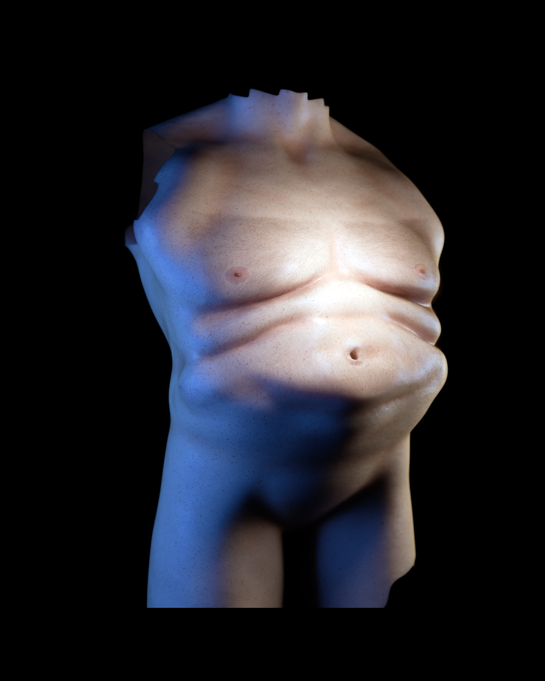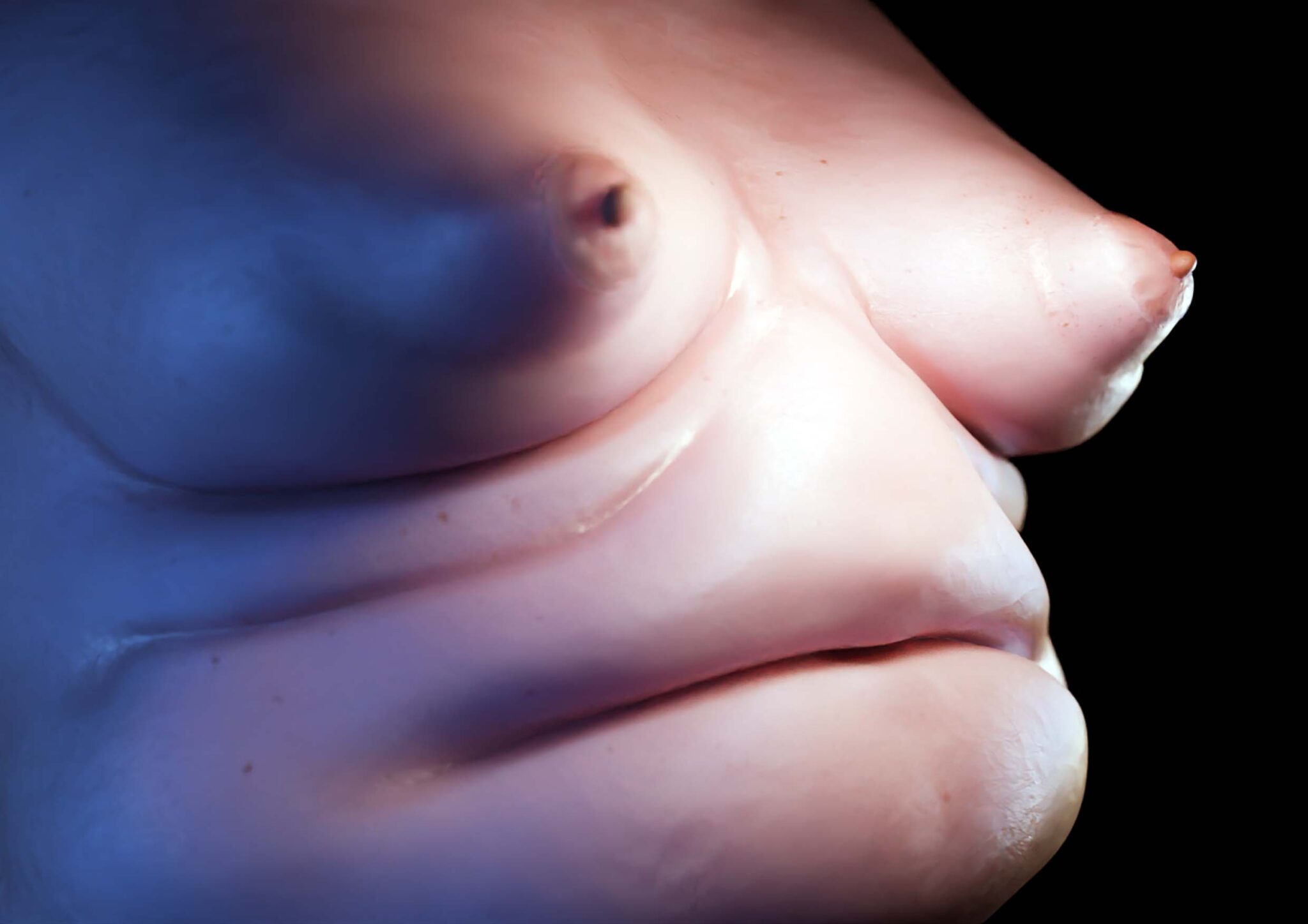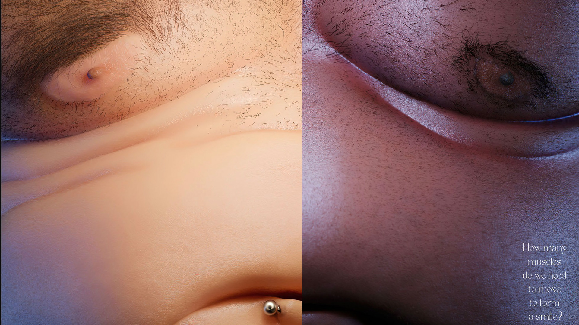 We were visually aiming for that sweet spot between a sad face and a sad belly – kind of like the optical illusions we sometimes come across. The final result is a realistic yet stylized approach to this section of the body, allowing it to be more than one at the same time.